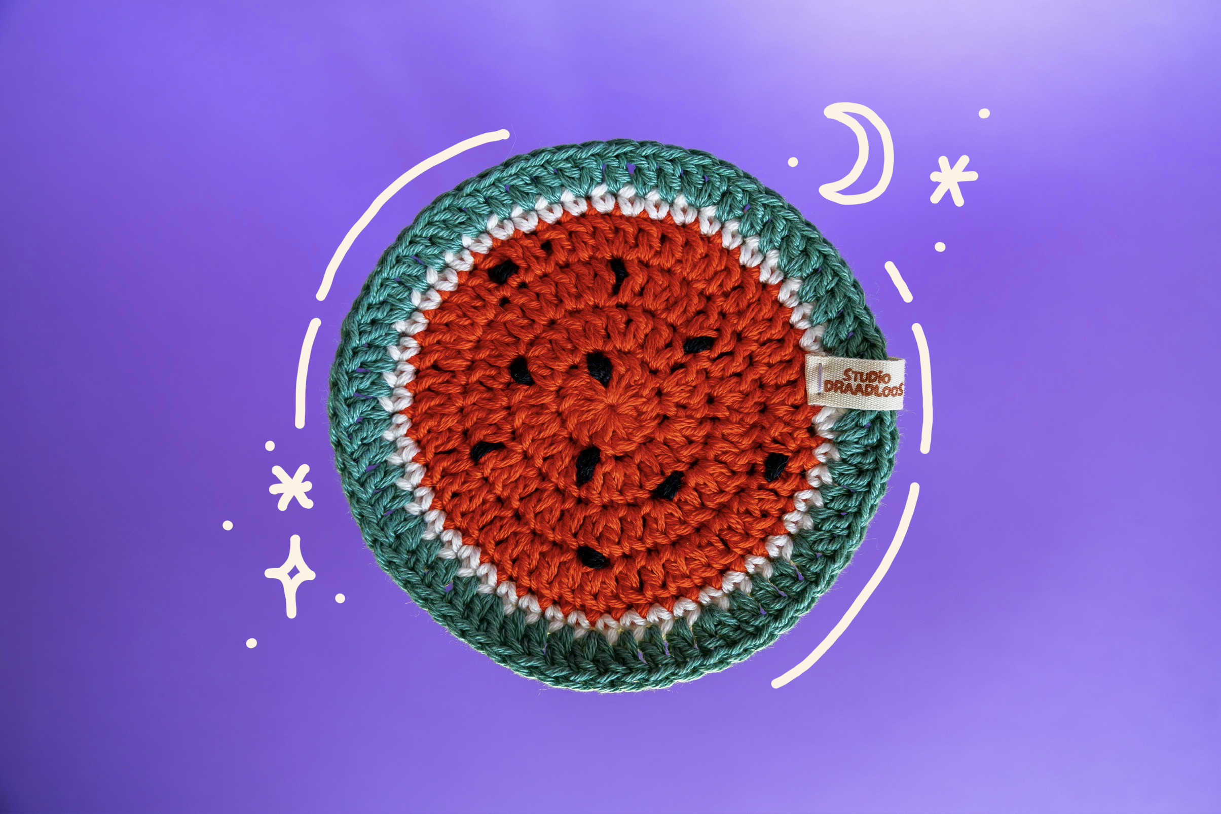 Een set van vier gehaakte onderzetters als verschillende stukjes fruit. Liever andere combinaties? Klik dan hier!