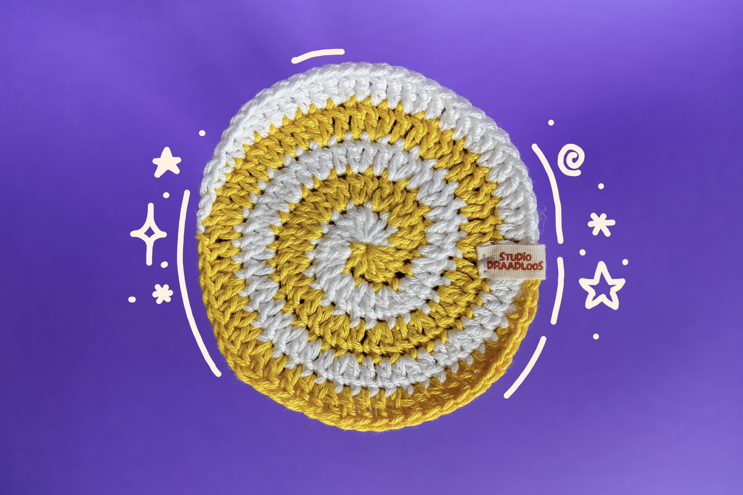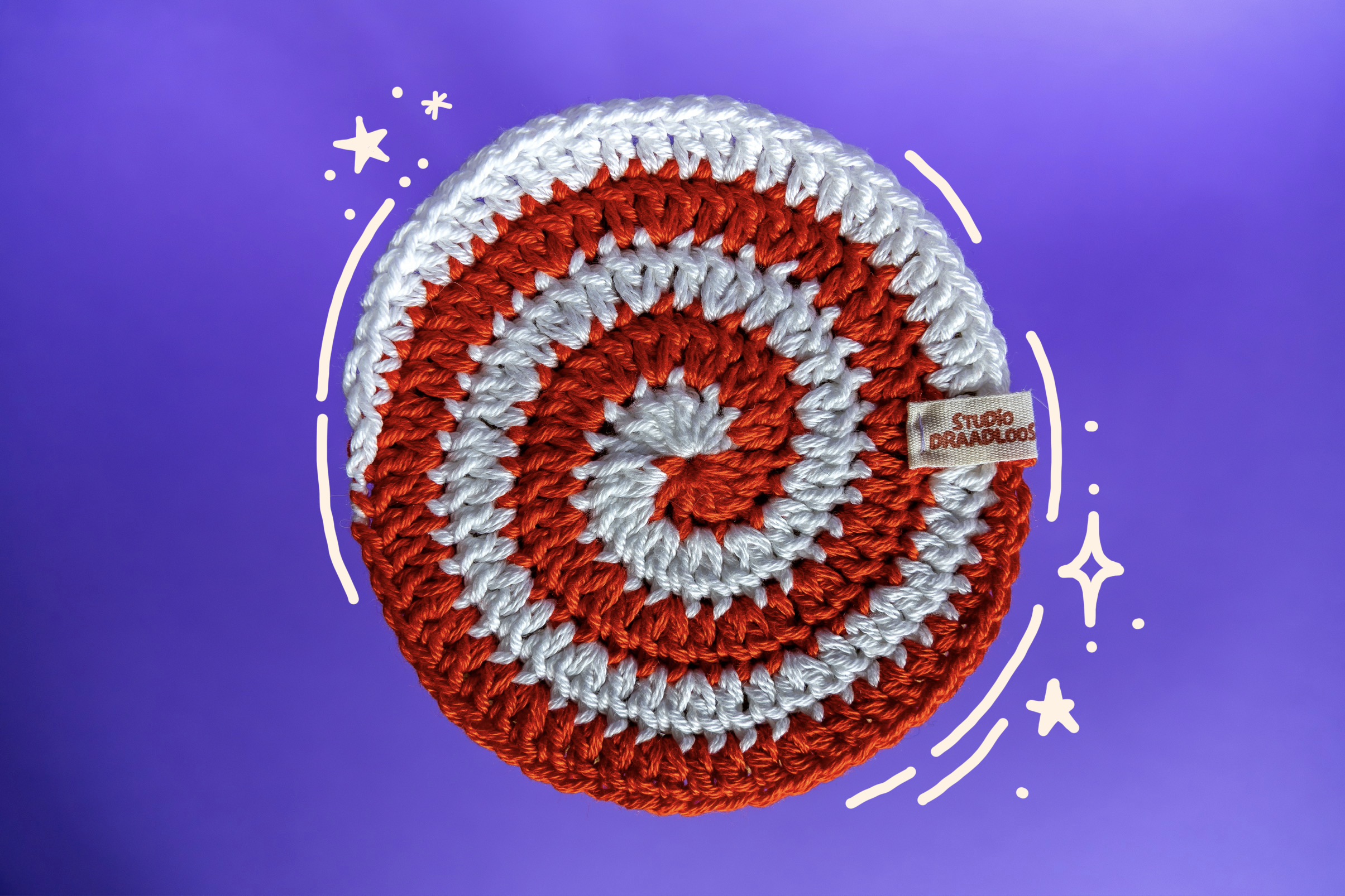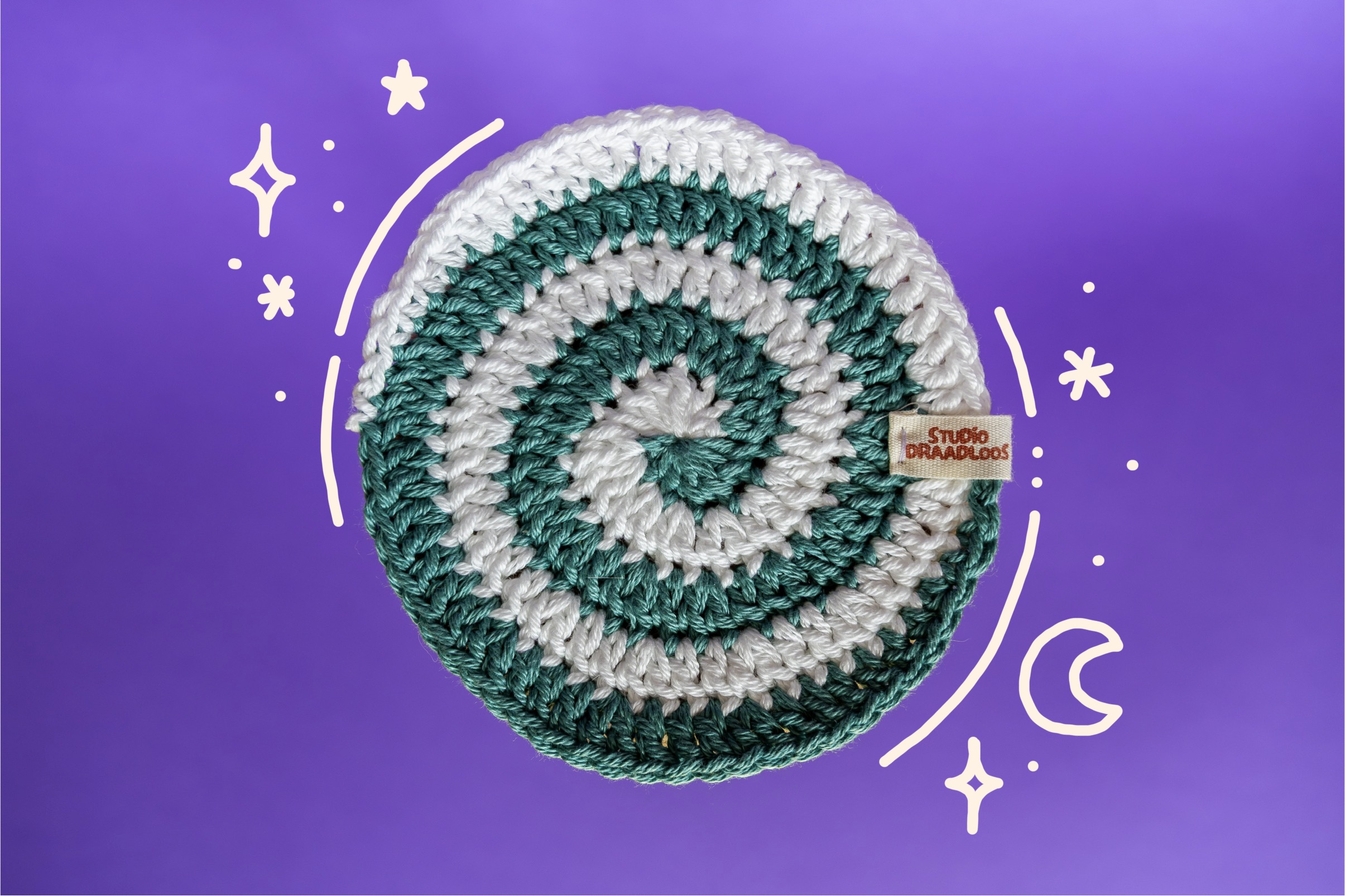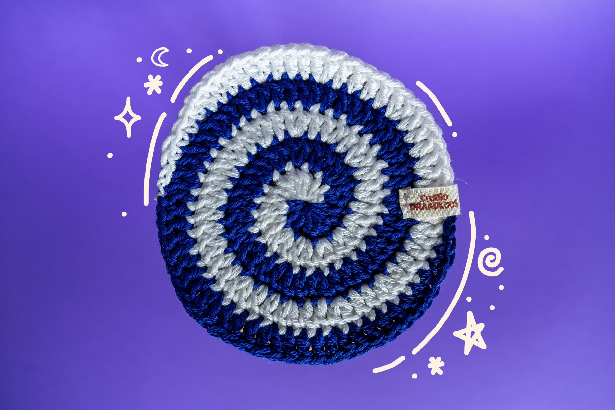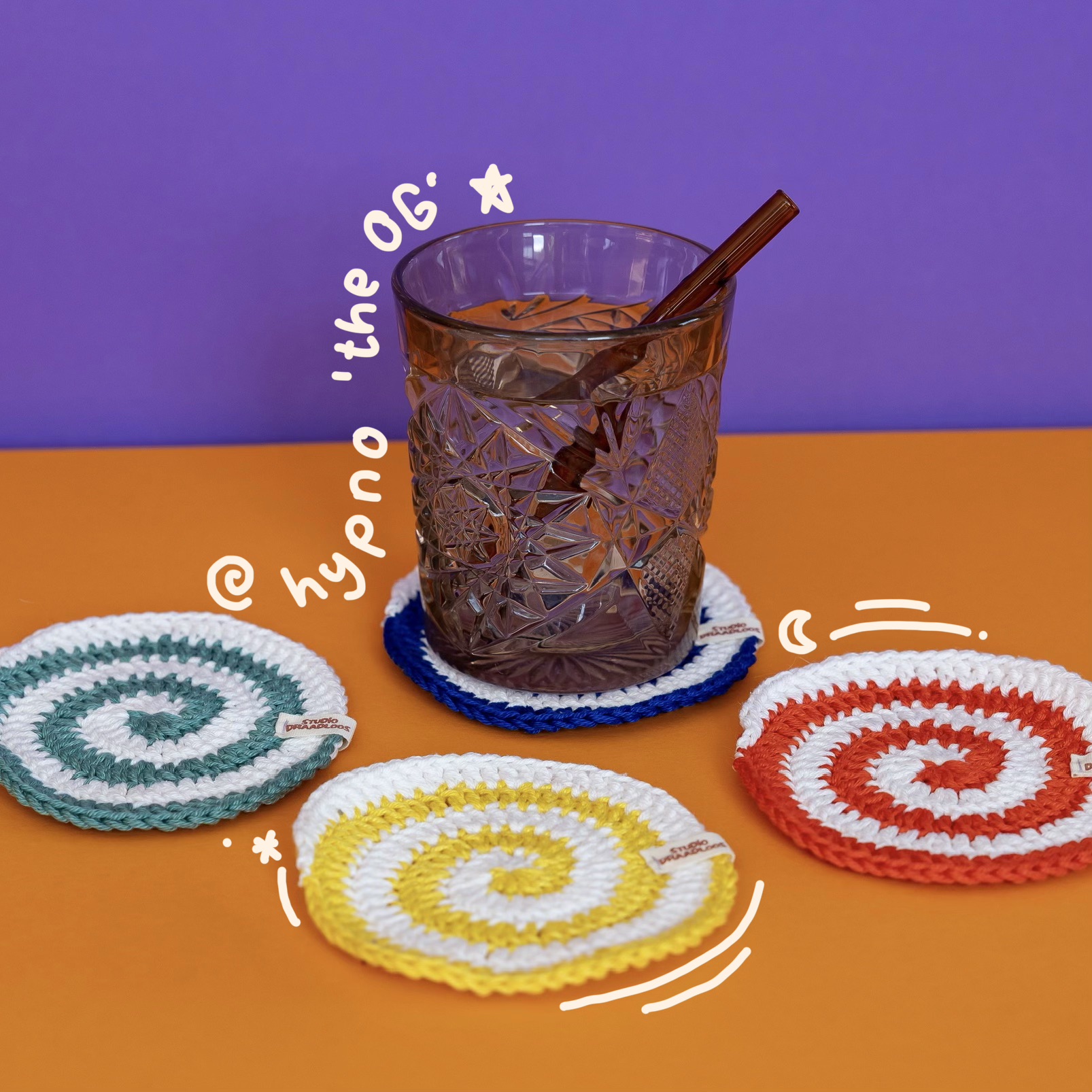 Een set van vier hypnotiserende onderzetters in vier basiskleuren. Liever andere kleuren? Klik hier om je eigen kleuren te kiezen!