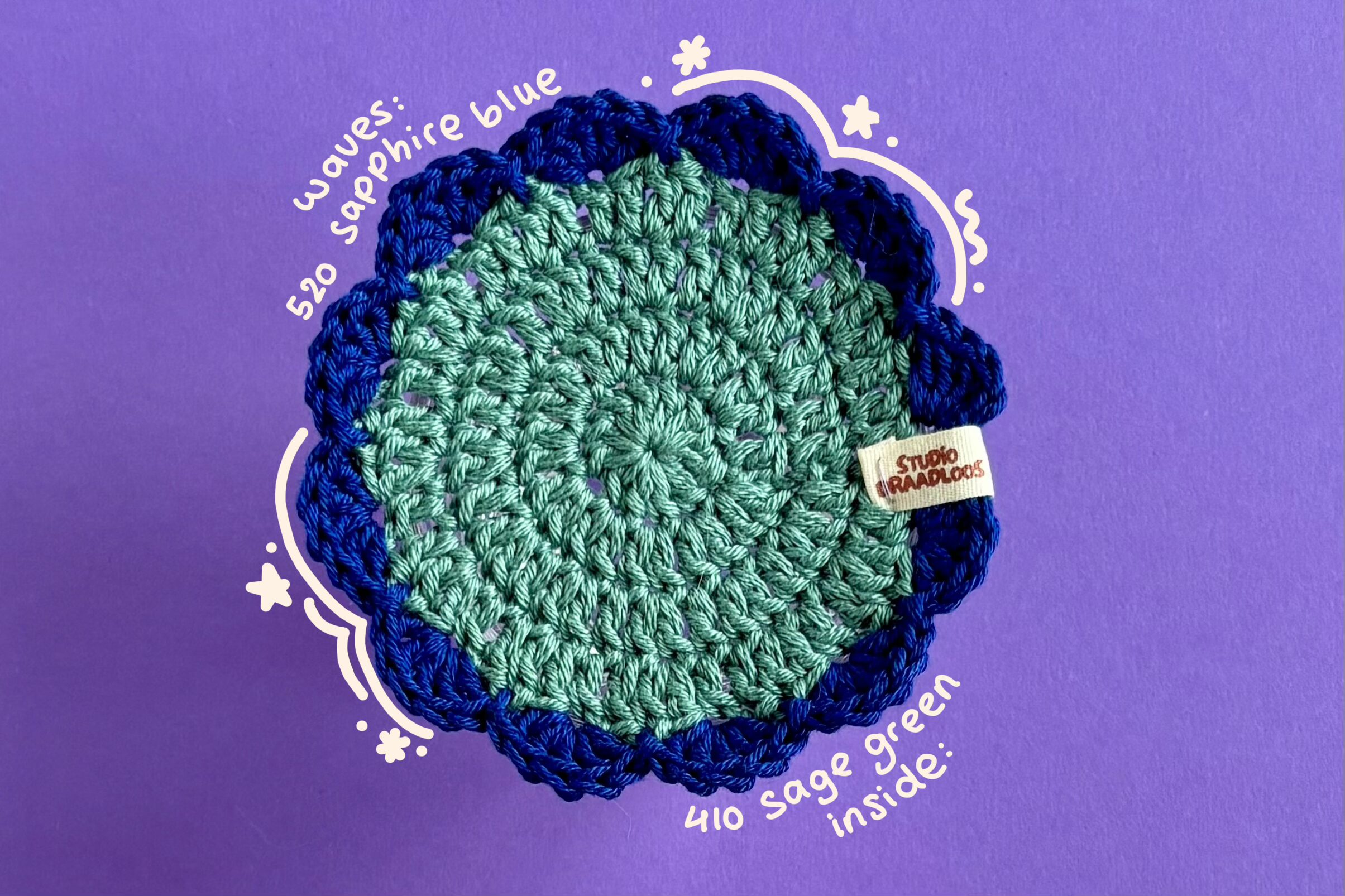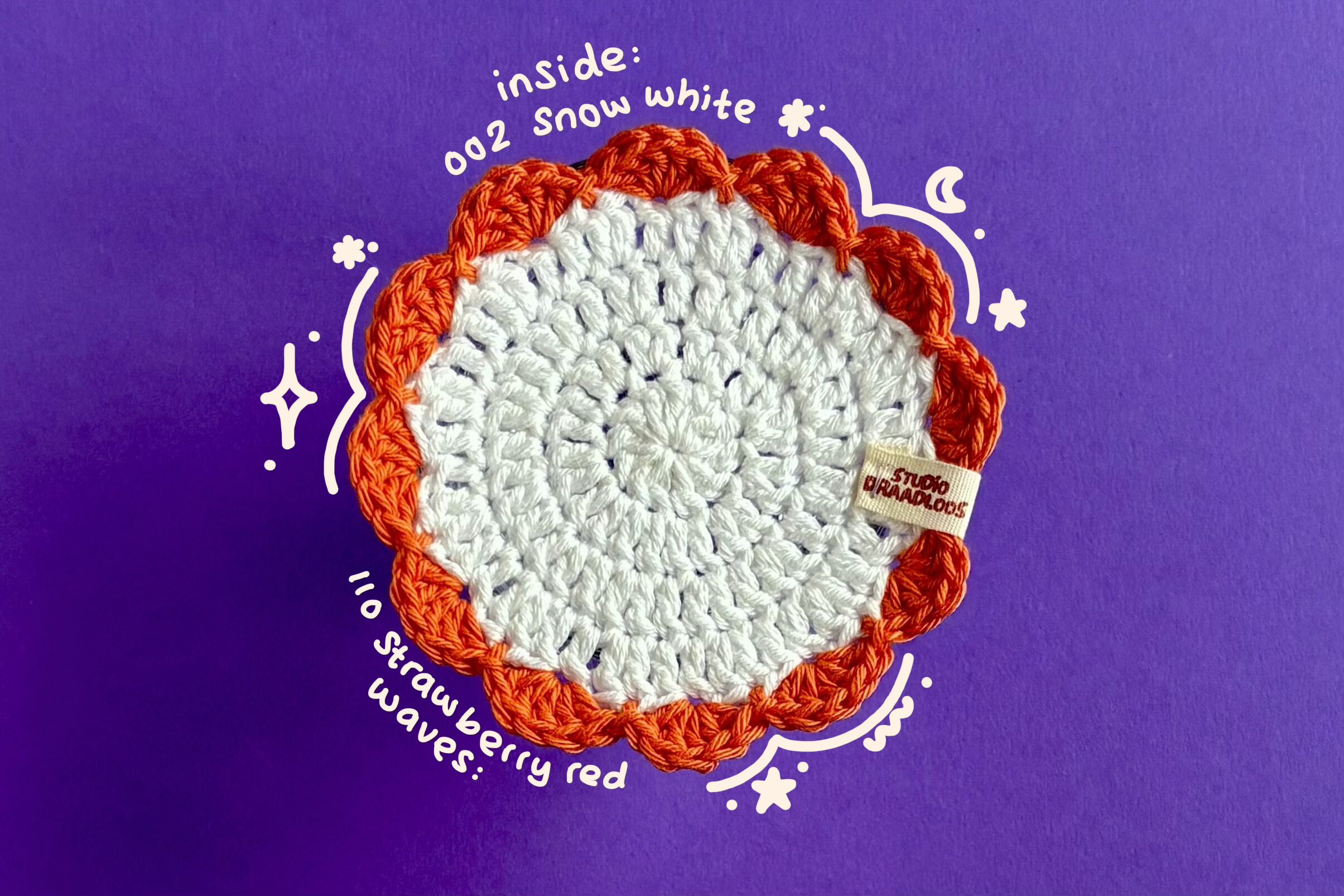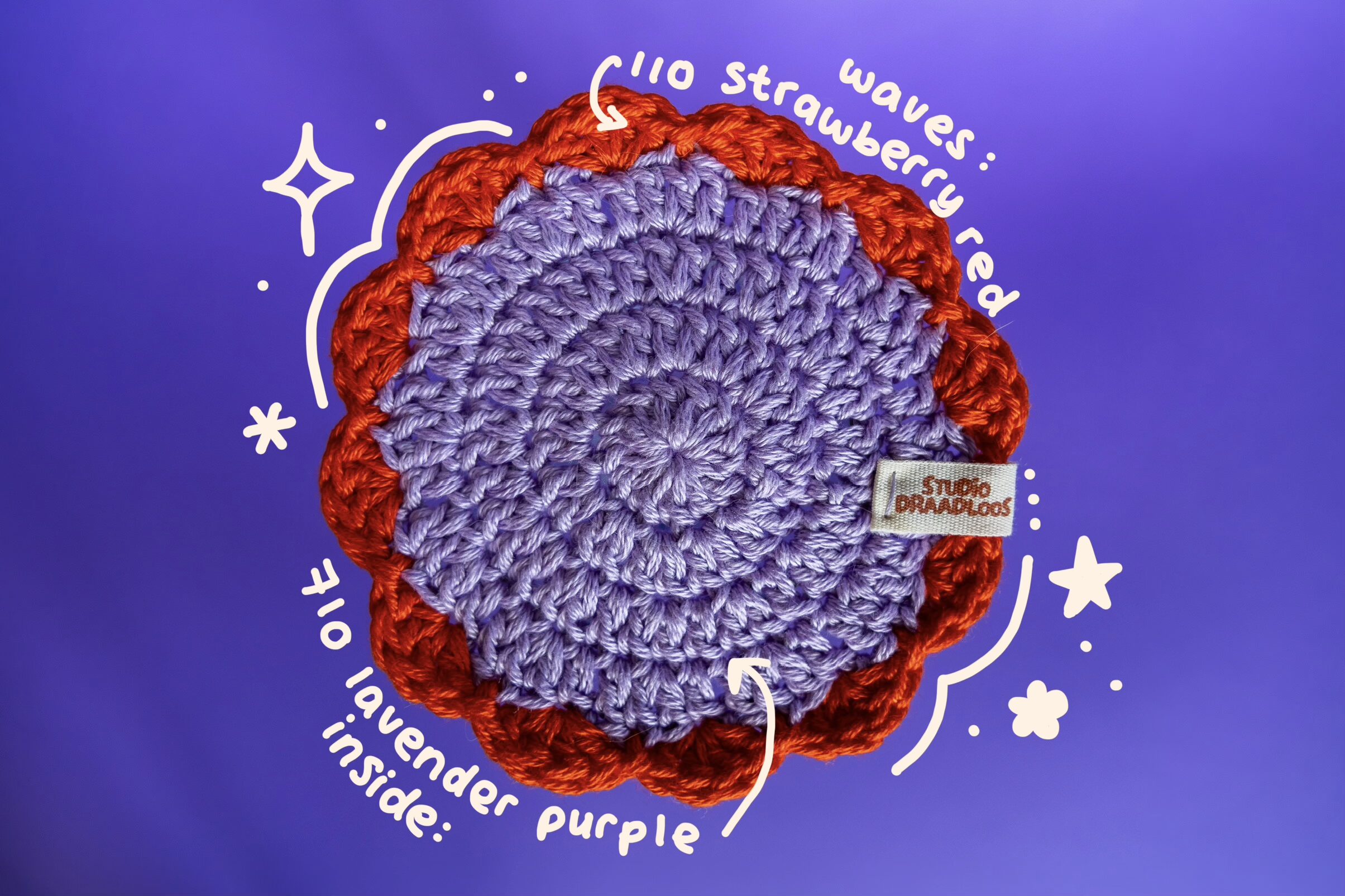 Een kleurrijke onderzetter met een golvend randje. Kies zelf de kleuren die jij leuk vindt! Keuzestress? Klik hier voor de set van vier!