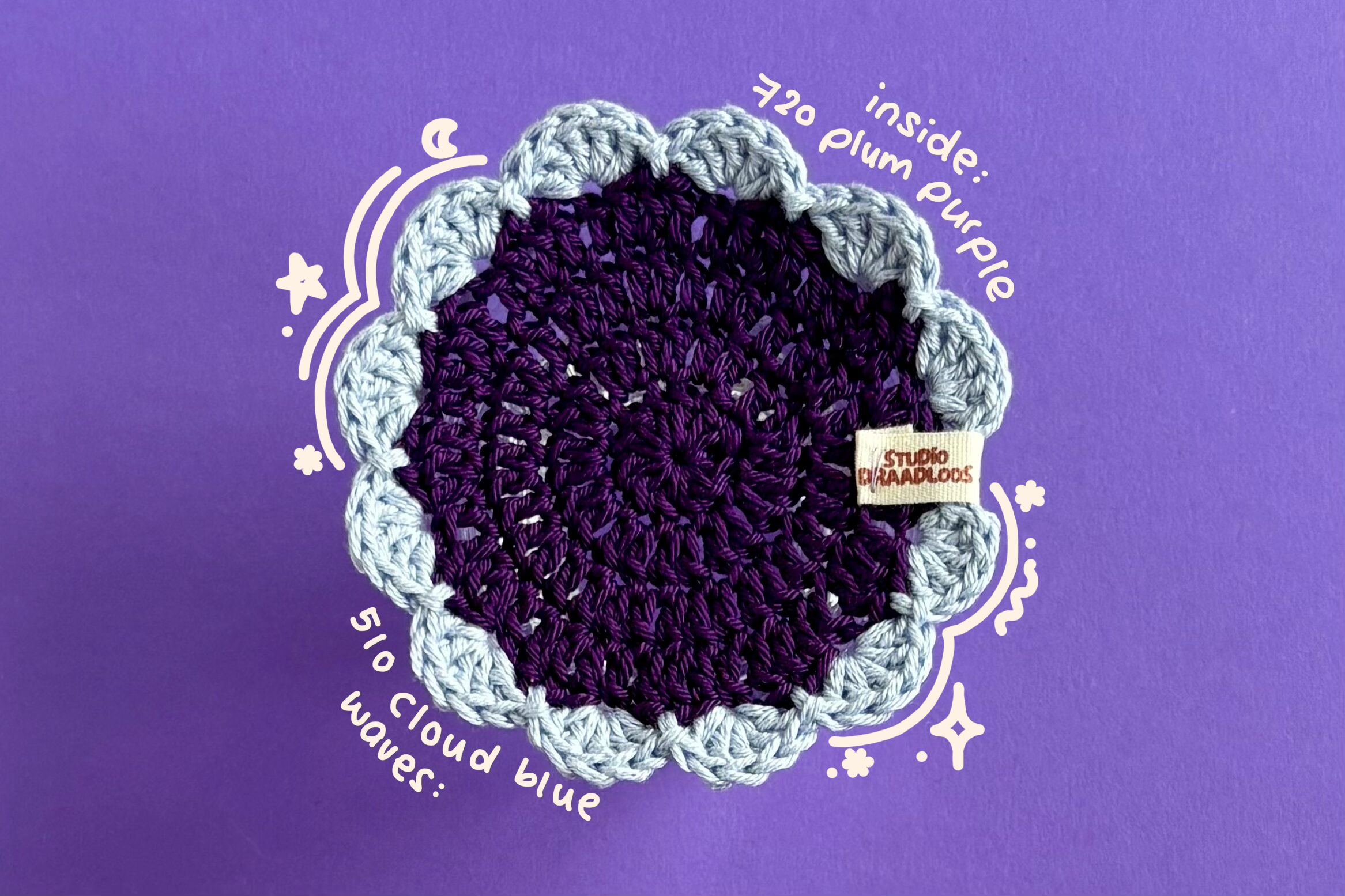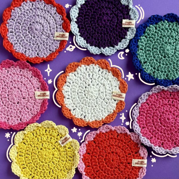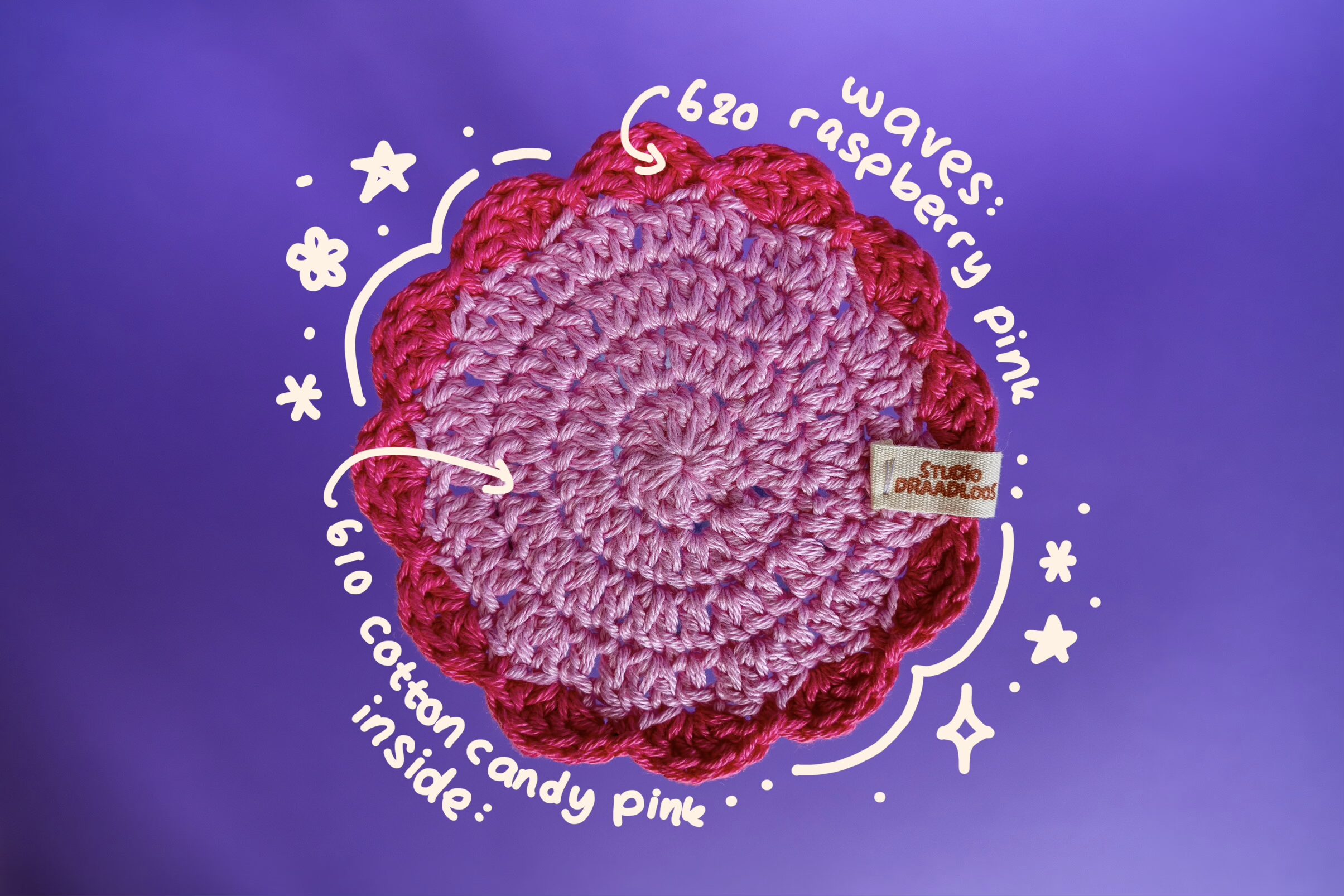 Een kleurrijke onderzetter met een golvend randje. Kies zelf de kleuren die jij leuk vindt! Keuzestress? Klik hier voor de set van vier!